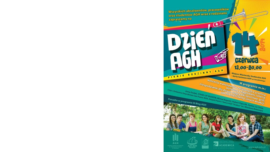 Zapraszamy wszystkich studentów, pracowników oraz absolwentów AGH wraz z rodzinami na DZIEŃ AGH, który odbędzie się 14 czerwca 2014 r w Krakowie.