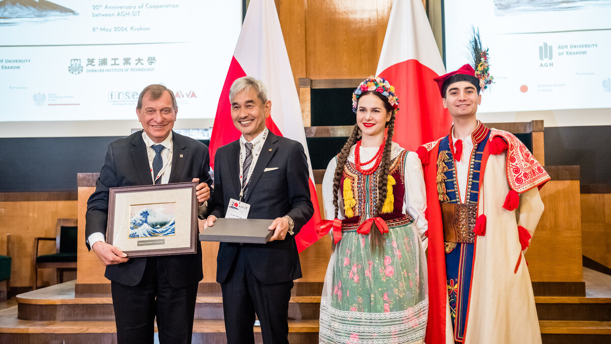 Ważnym punktem programu było wręczenie dyplomów absolwentom studiów wspólnych na kierunku Energy and Enviromental Enginneering. W ceremonii wzięli udział: prezydent SIT dr Jun Yamada, koordynator kierunku ze strony japońskiej prof. Akito Takasakiego, Dziekan Wydziału Wydział Energetyki i Paliw AGH prof. Monika Motak oraz prof. Janusz Szmyd.