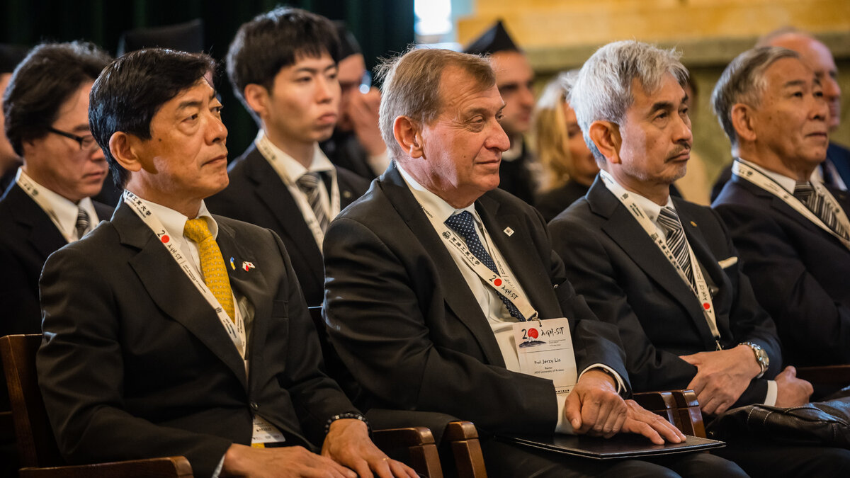 Jubileuszową uroczystość rozpoczął Rektor AGH prof. Jerzy Lis, witając zebranych gości. Następnie wystąpili: ambasador Japonii w Polsce Miyajima Akio, ambasador RP w Japonii Paweł Milewski (online), przedstawiciel Ministerstwa Spraw Zagranicznych, który odczytał list szefa MSZ Radosława Sikorskiego, dyrektor NAWA Dawid Kostecki, dyrektorka FRSE Katarzyna Aleksy, która odczytała list od dyrektora generalnego FRSE Mirosława Marczewskiego. Na zakończenie wystąpień koordynator ds. współpracy z Japonią w AGH prof. Janusz Szmyd przedstawił historię uczelnianej współpracy polsko-japońskiej oraz podsumował dwie dekady kooperacji naukowej SIT i AGH.